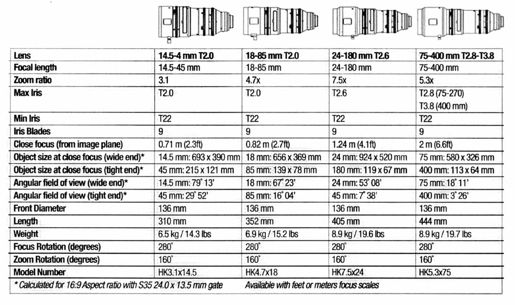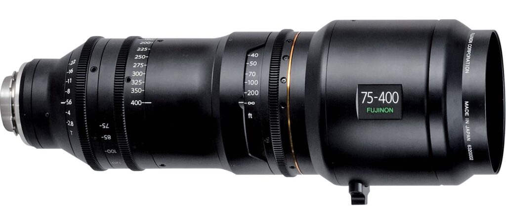 | Fujinon 75-400mm | T2.8-T3.8 | 6′ 6″ | – | – | 136mm |